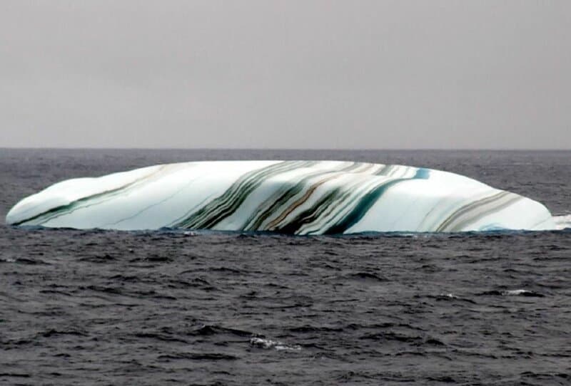 Лед в толще глыбы айсберга может иметь очень разные оттенки, в зависимости от условий, при которых сформировался