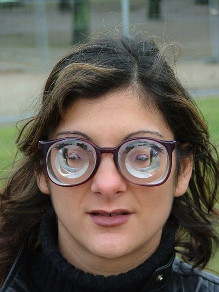Примерно так выглядят линзы с диоптриями для людей с очень слабым зрением, на уровне -20