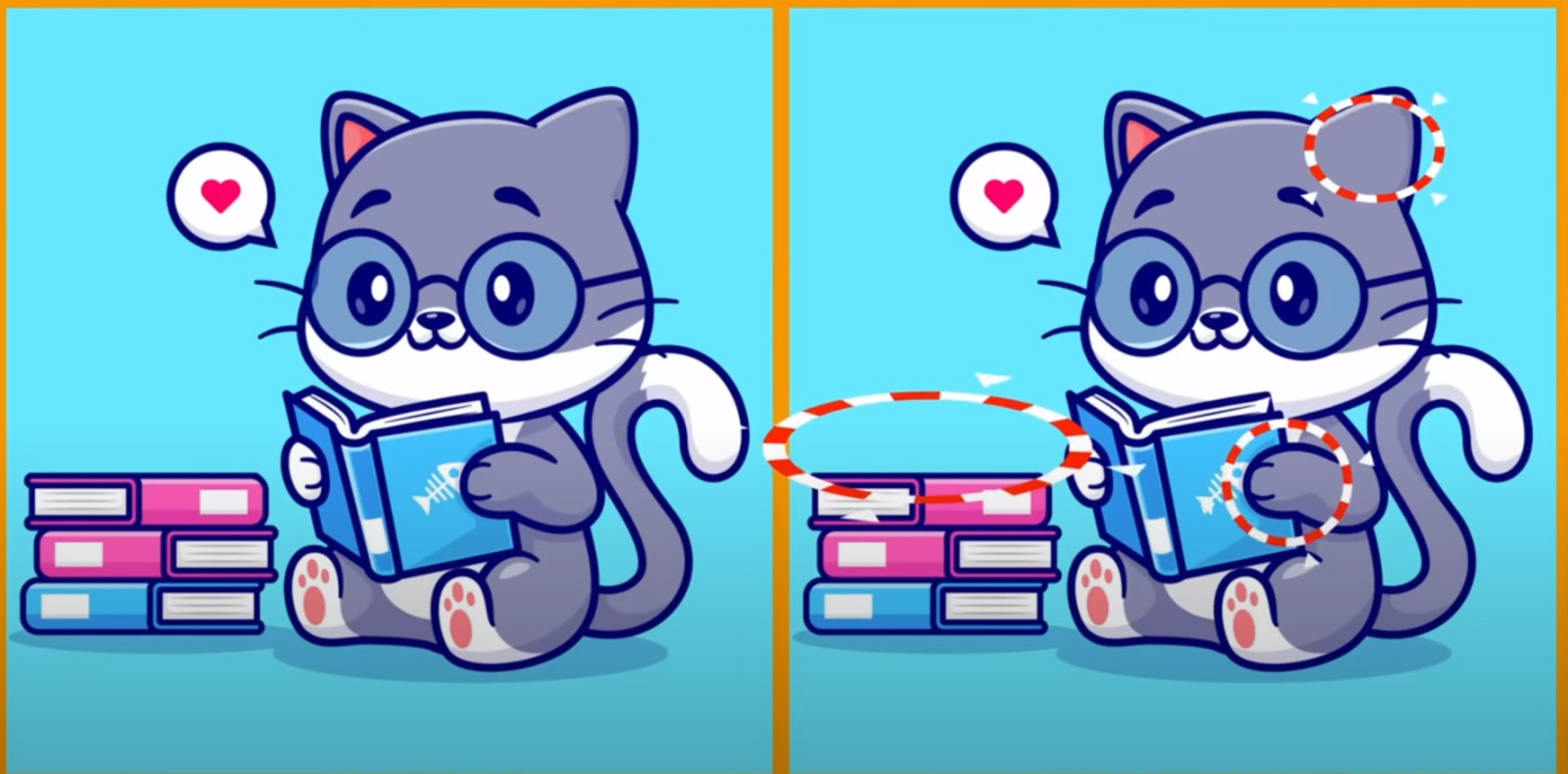 Эти коты на картинке выглядят так, как будто имеют профессорскую степень или, по крайней мере, заведуют библиотекой. А ваша задача - проявить свой интеллект и за 20 секунд найти отличия между котами.