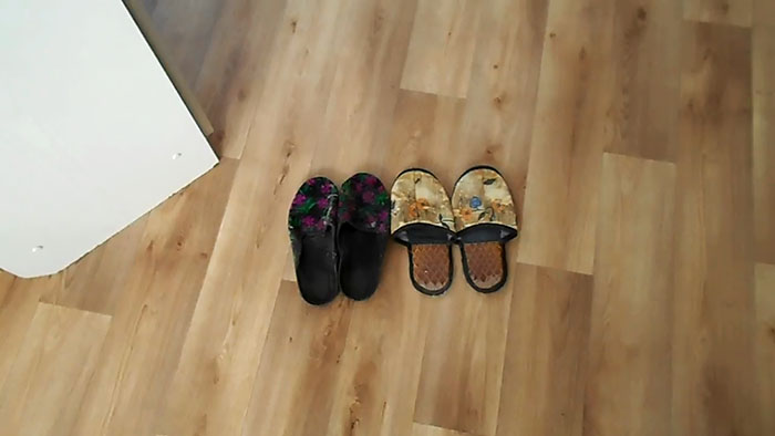 1. Для этого понадобится всего лишь две пары обычных домашних тапочек. Не волнуйтесь, обувь останется невредимой.