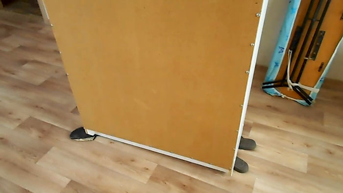 3. Теперь шкаф словно «плывёт» на четырёх тапочках. Они идеально скользят по полу, и даже одна рука сможет управлять движением мебели.