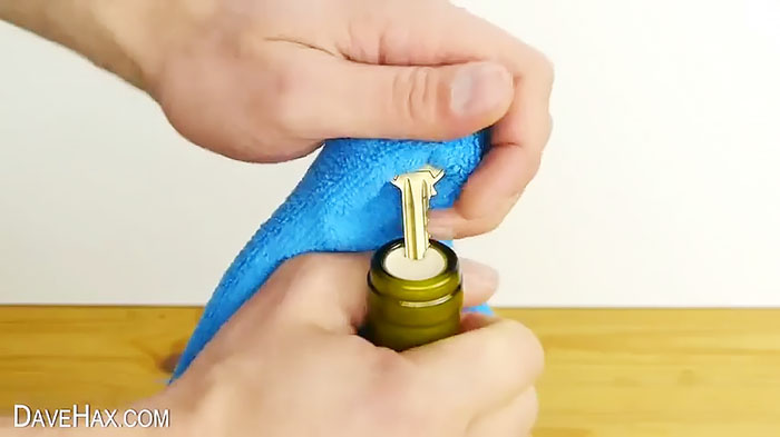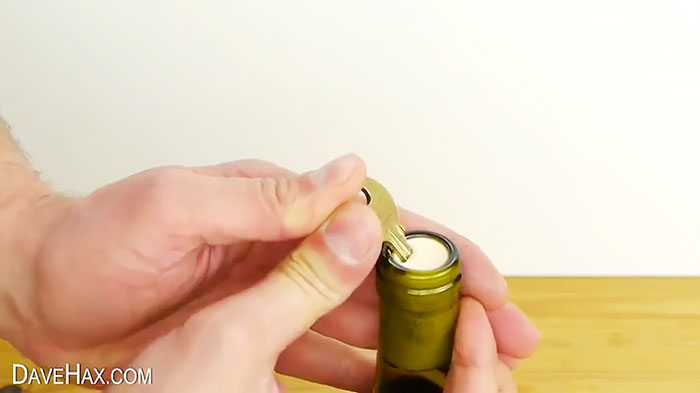 Теперь начинайте медленно поворачивать ключ вокруг своей оси. Первый оборот может потребовать усилий, но не сдавайтесь - пробка скоро поддастся. Продолжайте вращать, и вы заметите, как она постепенно выходит из горлышка.