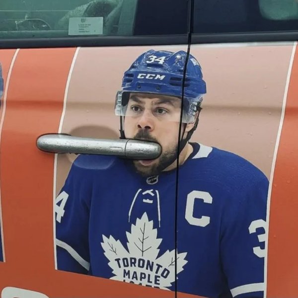 Совпадение линий сделало хоккеиста заложником дверной ручки. Неловко всем.