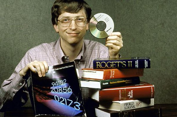 Билл Гейтс демонстрирует возможности компакт-диска. Момент, когда цифровое будущее ещё умещается в одной руке.