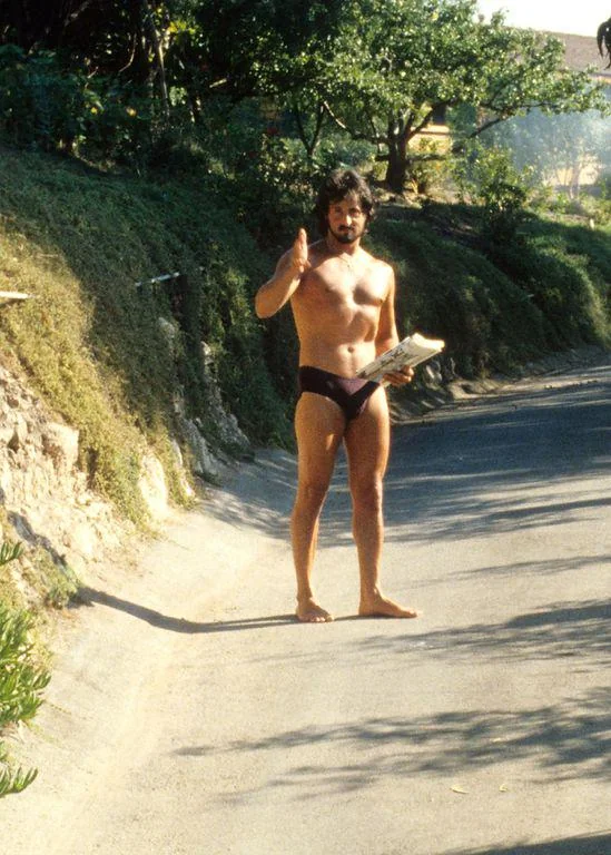 Сильвестр Сталлоне пойман папарацци когда актер вышел за газетой из своего дома в Малибу, 1979