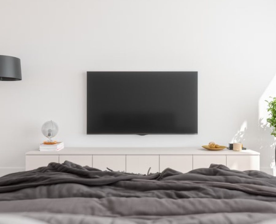Многие привыкли смотреть фильмы или сериалы прямо в постели. Однако дизайнеры считают, что телевизор нарушает атмосферу отдыха. Даже в выключенном состоянии он выглядит как тёмный экран, отвлекающий внимание, а его присутствие мешает психологически «отключиться» от дневных забот.