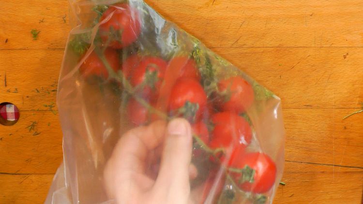 Помидоры - неженки. Недозрелые храним в бумаге «носом» вниз, спелые - на столе (холод убивает их вкус и текстуру). В холодильник отправляем только перезревшие экземпляры, но даем им согреться перед подачей.