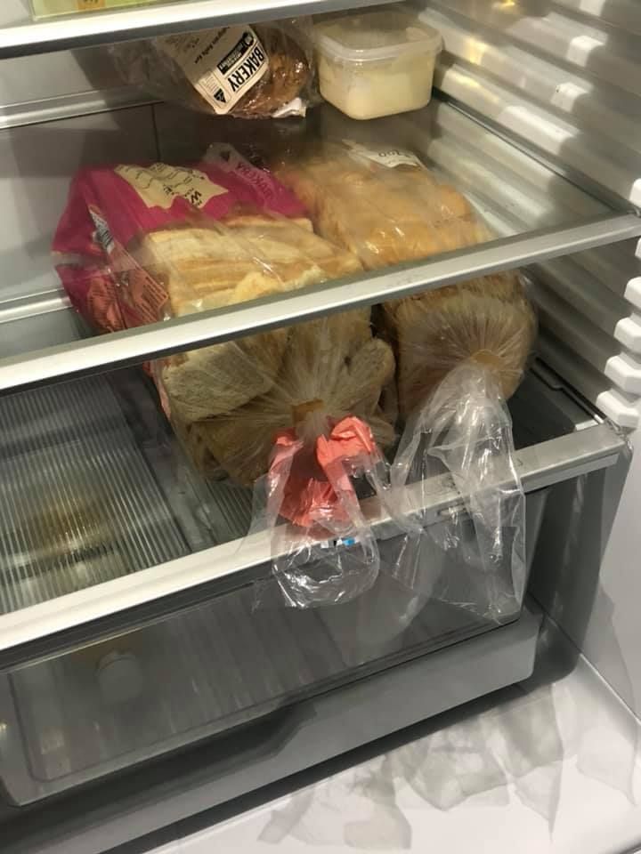Холодильник - это камера пыток для хлеба, там он черствеет мгновенно. Лучше использовать деревянную хлебницу. А если купили лишнего - сразу в морозилку. После духовки такой багет будет как из парижской пекарни.