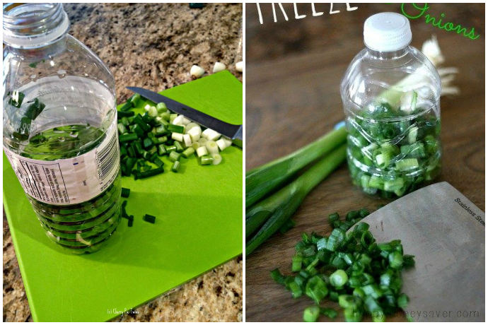 Нарежьте зеленый лук, высушите и засыпьте в пластиковую бутылку. В морозилке он останется рассыпчатым - вы просто отсыпаете нужное количество в суп или омлет, не размораживая весь запас.