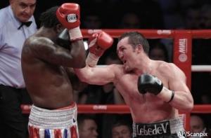 Титульный бой Лебедев – Джонс состоялся в Москве 17 мая 2013 года. В этом поединке у Лебедева на кону стоял чемпионский пояс по версии WBA в весе до 90,7 килограмма. В итоге Джонс победил техническим нокаутом в 11-м раунде.