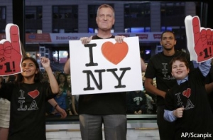 Мэр Нью-Йорка Билл де Блазио во вторник принял непосредственное участие в чествовании клуба Национальной хоккейной лиги (НХЛ) «Лос-Анджелес Кингз», ставшего обладателем Кубка Стэнли-2014. Во время развлекательного шоу Jimmy Kimmel Live! он в прямом эфире из студии телеканала ABC в Нью-Йорке спел песню Рэнди Ньюмана «I Love L.A.».