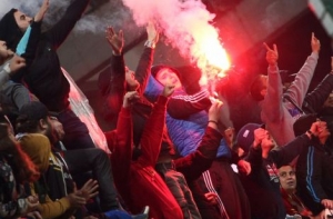 Болельщики сборной Черногории по футболу сняли на видео момент, когда на матче отборочного цикла Евро-2016 файер попал в голкипера российской команды Игоря Акинфеева.