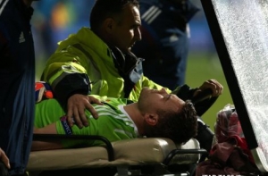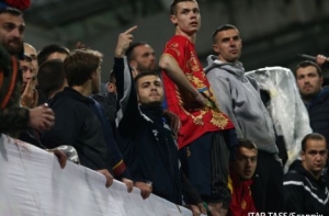 Встреча в Подгорице была остановлена на первой минуте после того, как брошенный с трибуны файер попал в голкипера россиян Игоря Акинфеева. Он покинул поле на носилках. Вратарь получил ожог шеи и сотрясение мозга, а матч был прерван на 40 минут.
