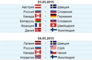 Первый день ЧМ-2015 завершится матчами между Чехией и Швецией – группа А, и Россией и Норвегией – группа Б. Обе игры пройдут в 21:15 по латвийскому времени.