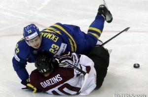Сборная Латвии по хоккею провела свой третий матч на чемпионате мира в Чехии. В Праге она встречалась со сборной Швеции и потерпела крупное поражение со счетом 1:8.