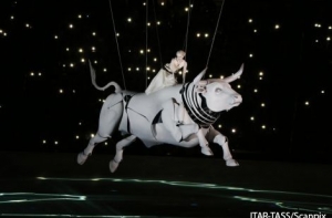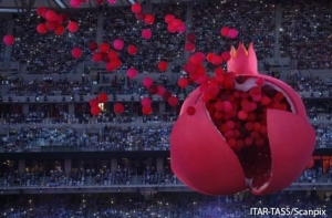 Финалом композиции стало крупное изображение национального флага Азербайджана.