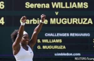 Первая ракетка мира Серена Уильямс в шестой раз стала победителем Уимблдонского турнира. В финале соревнований американка обыграла испанскую теннисистку Гарбин Мугурусу, сообщается на официальном сайте Уимблдона.