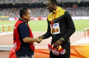 Инцидент произошел в четверг, 27 августа, после победы ямайца в забеге на 200 метров. Болт совершал круг почета по стадиону, а следовавший за ним на сегвее оператор не справился с управлением самоката и сбил спортсмена с ног. После столкновения легкоатлет пошутил, что «Сун, наверное, хотел убить его». По словам бегуна, он не получил никаких повреждений, а телеоператор отделался небольшим ушибом.