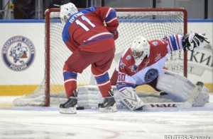 Президент России уже неоднократно принимал участие в матчах Ночной хоккейной лиги. В последний раз он вышел на лед в гала-матче НХЛ в мае. Российский лидер забил тогда восемь голов, а команда, за которую он играл, одержала победу со счетом 18:6.