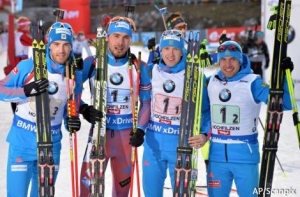 Россияне показали время 1 час 11 минут 40,8 секунды, использовав шесть дополнительных патронов. Второе место заняла команда Норвегии (+3,1 секунды; 7 дополнительных патронов). Тройку призеров замкнули французы (+1:01,9 + 6).