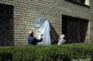 Эскиз памятной доски разработал латвийский архитектор Андрейс Гелзис.
