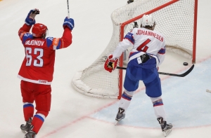Cборная России по хоккею обыграла норвежскую команду со счетом 3:0 в шестом матче группового турнира мирового первенства (0:0, 2:0, 1:0).