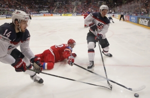 В начале третьего периода у американцев снова отличился Фрэнк Ватрано, забросивший шайбу на 44-й минуте. На это десять минут спустя ответил Сергей Мозякин, также сделавший дубль.
