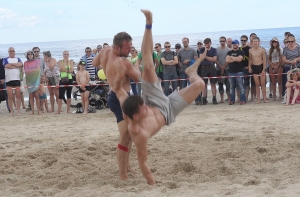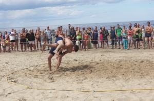 В Юрмале в девятый раз прошел Чемпионат по пляжной борьбе, на этот раз в расширенном виде – в курортном городе также прошел фестиваль по национальным видам спортивной борьбы. Организаторами мероприятия выступили Латвийская федерация борьбы «Эй дар», Федерация туркменской борьбы «гореш», Киргизская федерация борьбы на поясах, спортклуб Lači и фирма Galomet.