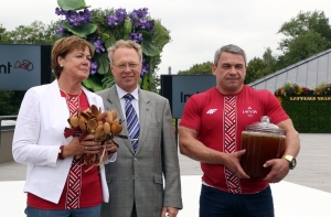 По словам Вейониса, флаг – это символ принадлежности к стране, а ржаной хлеб воплощает собой единство родины и народа.