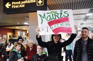 Бриедис прилетел в столицу рейсом из Варшавы около 17:30. В Рижском аэропорту его с овациями встретили болельщики, журналисты, а также коллеги Бриедиса из Госполиции. Встречающие радостно скандировали имя спортсмена, сообщает портал tvnet.lv.