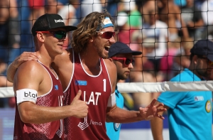 Ведущий латвийский дуэт в пляжном волейболе – Александр Самойлов и Янис Шмединьш – в субботу на проходящем в Юрмале Чемпионате Европы выиграли матч за выход в финал и сегодня сразятся за первое место с олимпийскими вице-чемпионами.