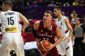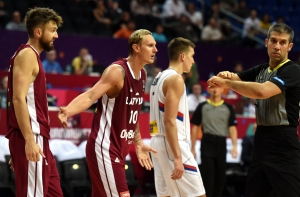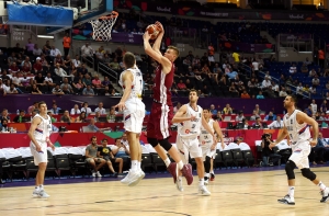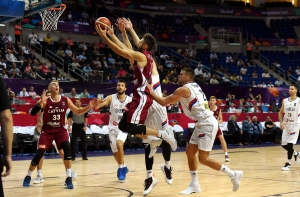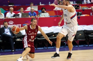 Латвийская мужская сборная по баскетболу в пятницу провела первый матч чемпионата Европы, уступив в равной борьбе с результатом 82:92 (24:21, 23:24, 13:20, 22:27) сборной Сербии.