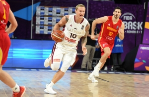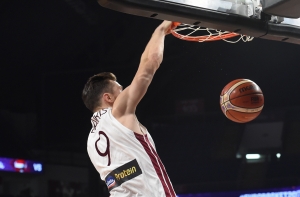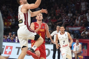 Латвийцы убедительно выиграли борьбу за подборы 40:25, а также реализовали 15 из 25 трехочковых в то время, как черногорцы были точны в девяти атаках из-за дуги из 22.