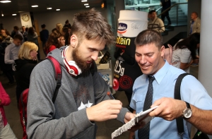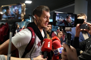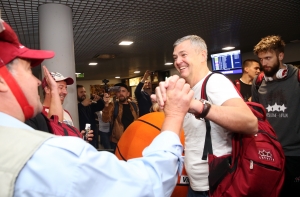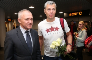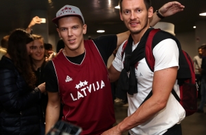 Сегодня сборная Латвии по баскетболу вернулась домой. В Рижском аэропорту команду встречали близкие, болельщики и журналисты. Об этом пишет Nra.lv.