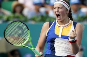 Остапенко, посеянная восьмой, за 1 час 54 минуты победила пуэрториканку Монику Пюиг, которая вышла в основную сетку турнира через квалификацию, - 6:2, 3:6, 6:3.