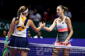 Латвийская теннисистка Елена Остапенко одержала свою первую победу на Итоговом чемпионате WTA 2017 года в Сингапуре, обыграв чешку Каролину Плишкову со счетом 6:3, 6:1.