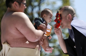 В Токио состоялся ежегодный фестиваль «Наки Сумо», в ходе которого сумоисты должны доводить до слез младенцев, сообщает «Советский спорт».