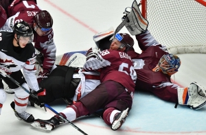 В понедельник 14 мая в предпоследнем туре чемпионата мира по хоккею сборная Латвии оказала упорное сопротивление Канаде, уступив сильнейшему сопернику, считающемуся фаворитом ЧМ, лишь в овертайме - 1:2 (0:1, 0:0, 1:0, 0:1)