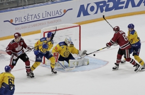 Вратарю рижан Кристерсу Гудлевскису не удалось отыграть на ноль - в конце игры швейцарцы, усилиями Шейна Принса забили гол престижа.