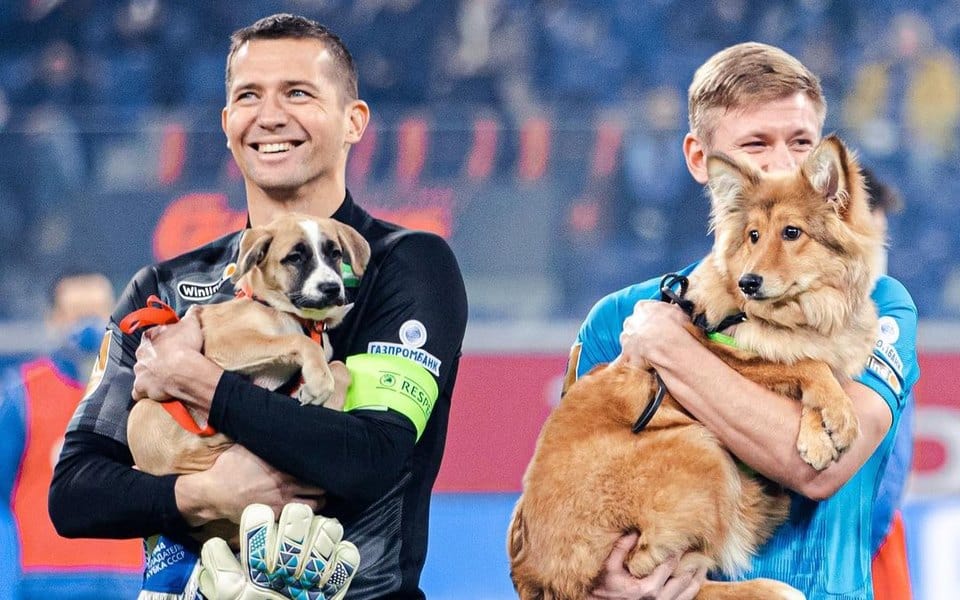 Футболисты петербургского ФК «Зенит» вышли на поле с щенками