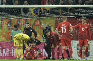Нападающий «Баварии» Левандовски пострадал от брошенной на поле петарды