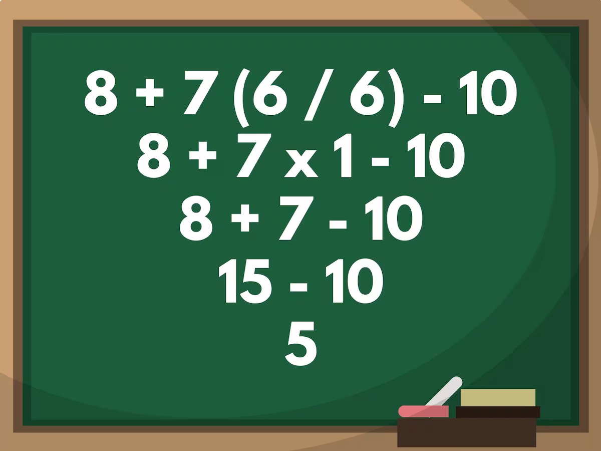 Перед вами выражение: 8 + 7 (6 / 6) - 10.