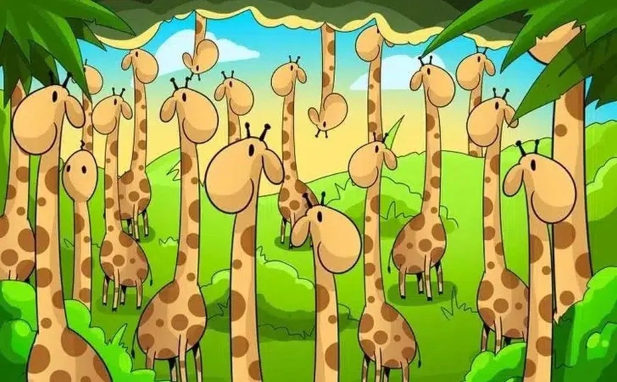 Внимательно посмотрите на картинку и попробуйте как можно быстрее найти змею, спрятавшуюся среди жирафов.
