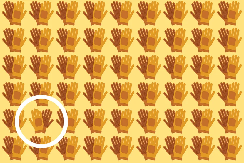 Внимательно посмотрите на изображение и постарайтесь как можно быстрее найти пару перчаток, которая отличается.