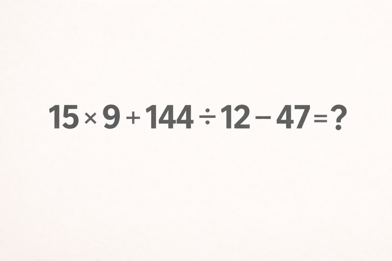 Любите такие моменты, когда мозг включается на полную, а ответ находится буквально на кончиках пальцев? Этот короткий пример как раз из таких: простые числа, знакомые действия, и при этом легко ошибиться, если торопиться или перепутать порядок действий. Попробуйте уложиться в 30 секунд, а потом проверьте себя по решению в конце.