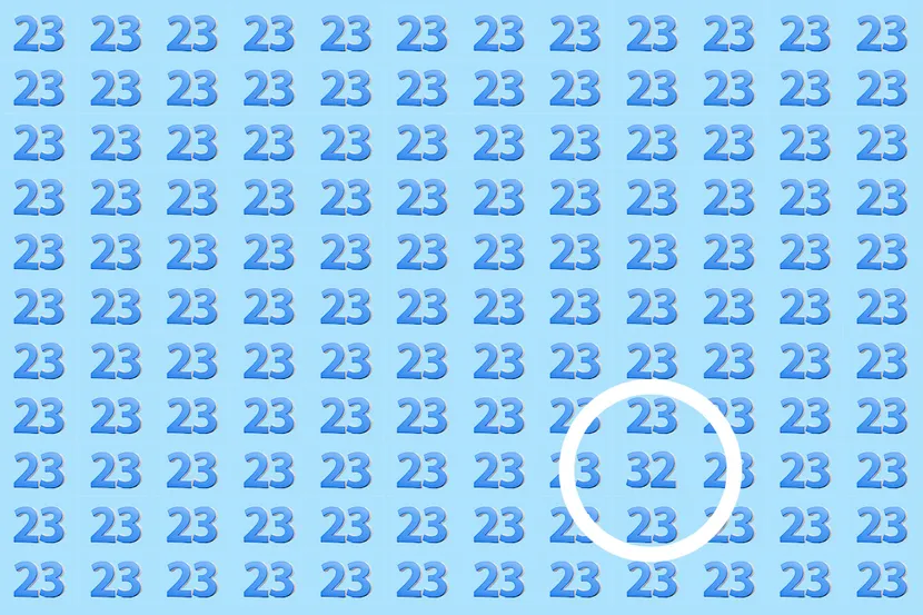 На картинке - стройные ряды и колонки с числом 23. Всё выглядит настолько ровно и одинаково, что мозг почти сразу включает автопилот: «да тут везде одно и то же».
