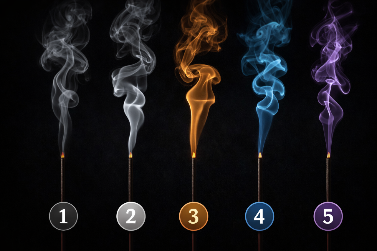 Посмотрите на 5 дымков от ароматических палочек и выберите тот, который притягивает вас сильнее всего. Не анализируйте слишком долго, лучше довериться первому ощущению.