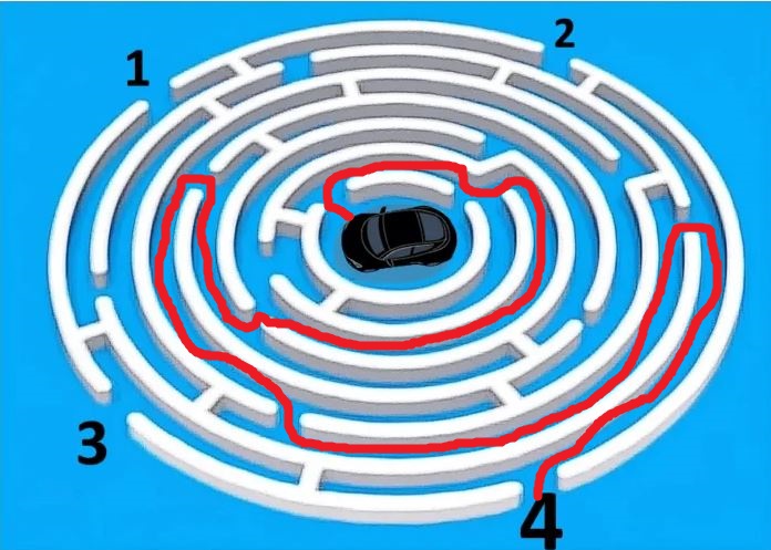 Задача выглядит элементарной - перед вами круговой лабиринт с автомобилем в центре и четырьмя возможными выходами. Нужно определить, какой из путей действительно ведёт наружу.