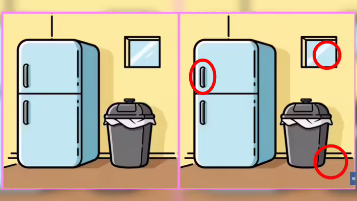 👉 Отличия спрятаны в деталях дверцы, окне и тени от мусорного бака.
