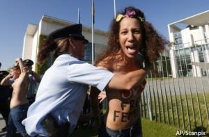 Полиция Берлина арестовала трех активисток FEMEN, когда те попытались помешать встрече канцлера Германии Ангелы Меркель и премьер-министра Туниса Али Лараеда.